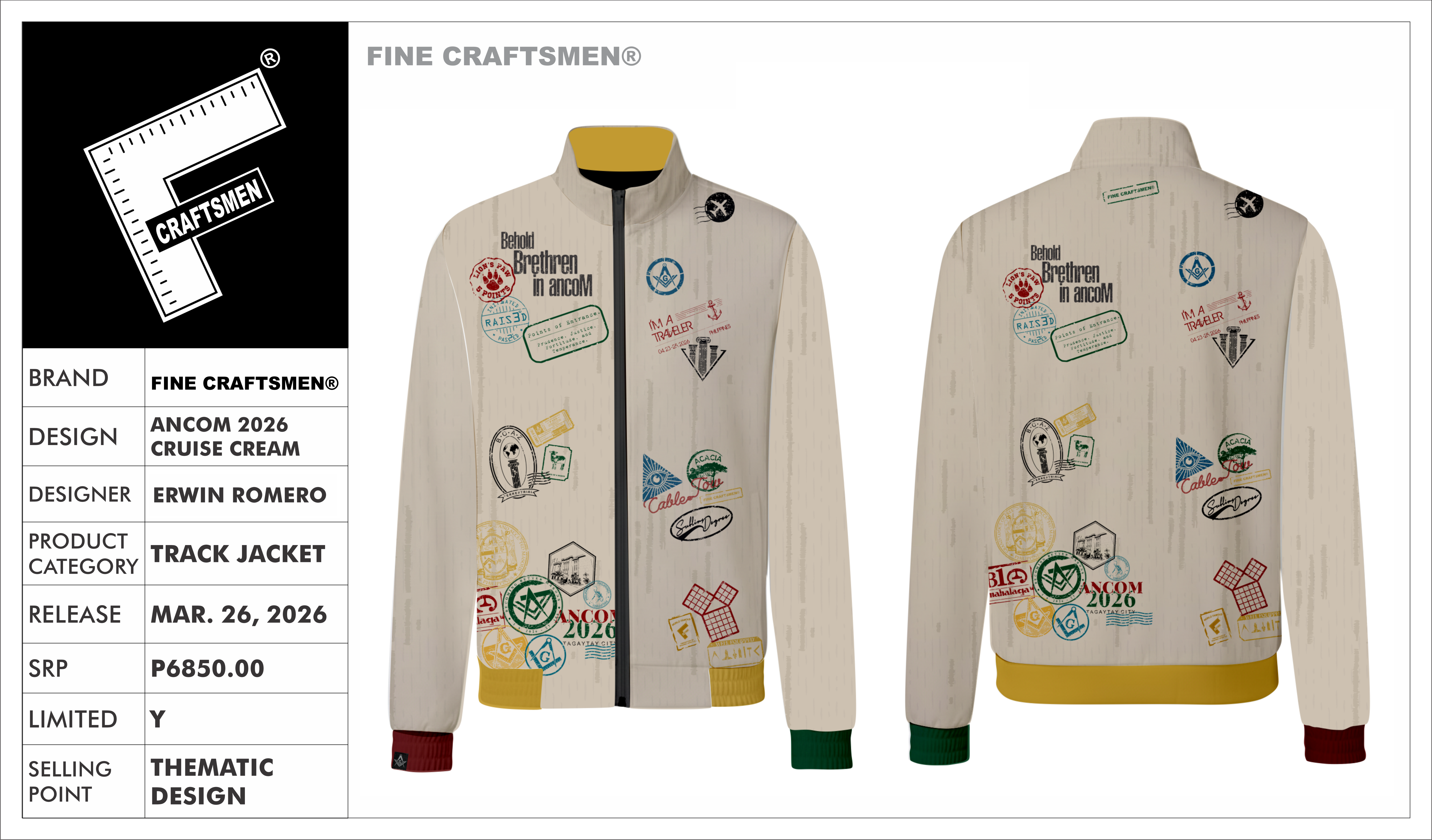 FINE CRAFTSMEN® PREMIUM MASONIC TRACK JACKET: ANCOM 2026 - CRUISE CREAM